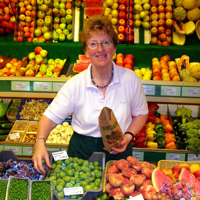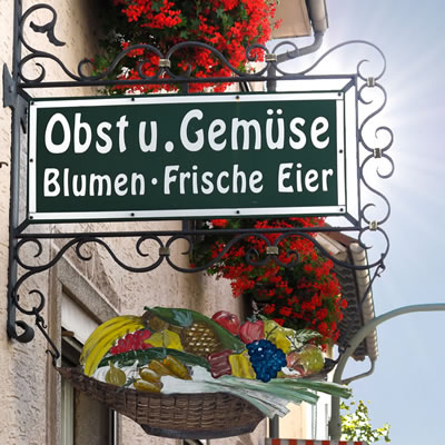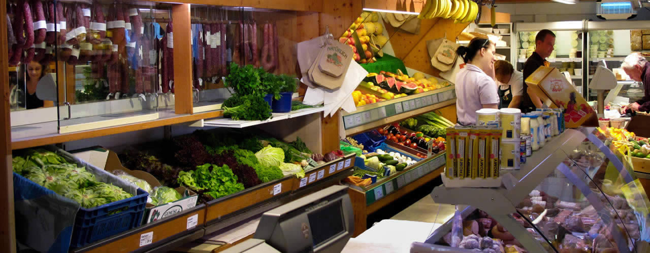Brot, Brötchen, Kuchen und Torten aus eigener Herstellung, Obst, Gemüse und Kräuter, Feinkost, Sauerkonserven, zweimal wöchentlich frisches Geflügel, hausgemachte Marmeladen, Eierlikör, Eier und Nudeln, Blumen, Pflanzen und Erde, täglich wechselnde frisch zubereitete warme Gerichte, frische Snacks und Salate, saisonale Dekorationsartikel, Schmuck und kleine Geschenke, Zeitungen und Zeitschriften